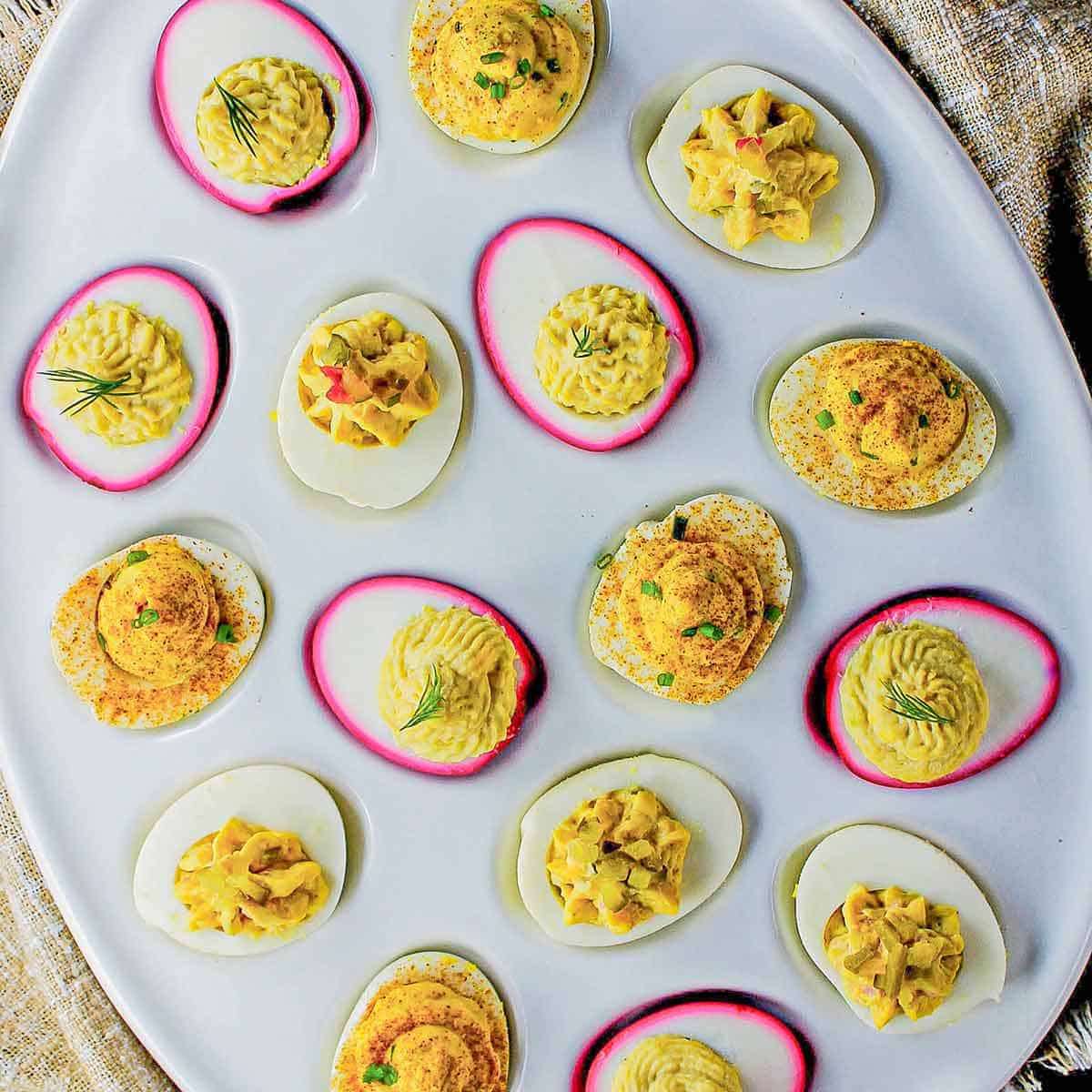This Stuffed Eggs - 3 Ways recipe gives you the flexibility to satisfy all of your deviled-egg-loving friends and family! We give you Traditional Deviled Eggs, Ham & Cheese Stuffed Eggs, and Horseradish Beet Eggs! These can be made up to 12 hours in advance and kept chilled in the fridge!