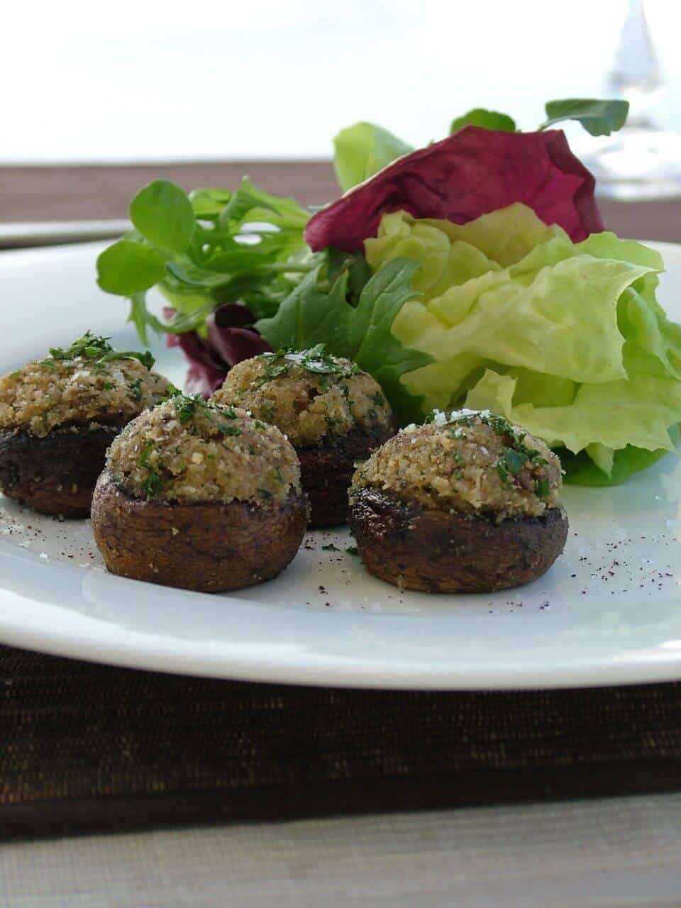 - Place the stuffed mushrooms in the fridge for 15-20 minutes, place on a lightly oiled oven proof tray and bake for 15-20 minutes until golden.