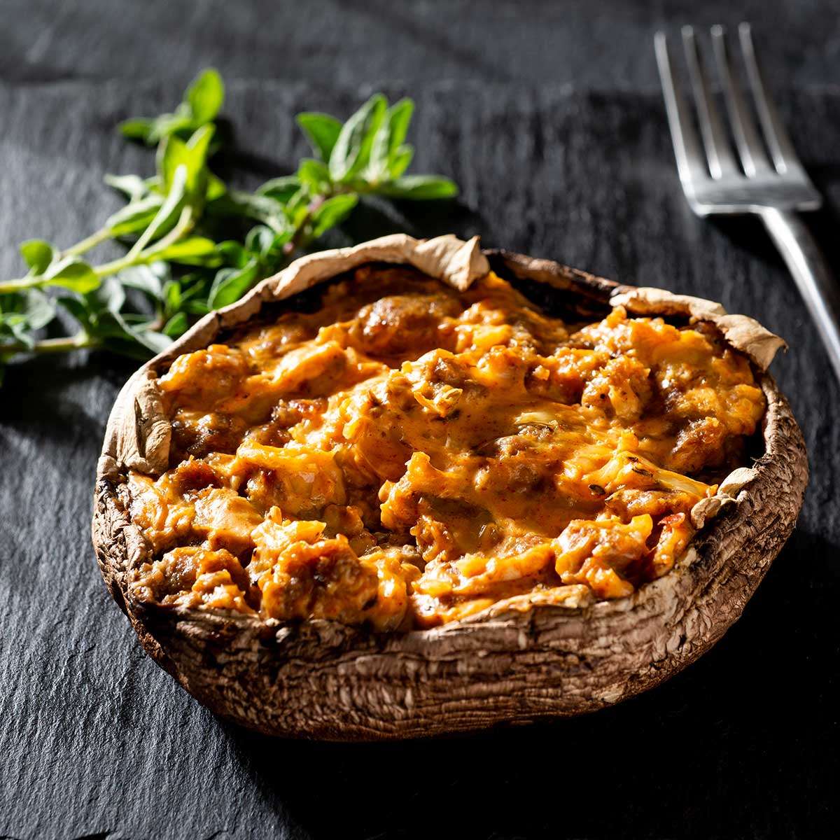 - Bake uncovered until the mushrooms are soft and the filling is starting to brown (about 30 minutes). Serve hot.