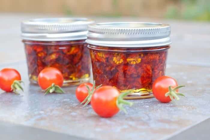 - When tomatoes are dried they can be stored in either a plastic bag or packed in a jar with olive oil. If storing for long term, add a 1/2 cup of white vinegar or red wine vinegar to a bowl. Dip tomatoes into vinegar, just for a second, shake excess off, and then store in jar with oil.