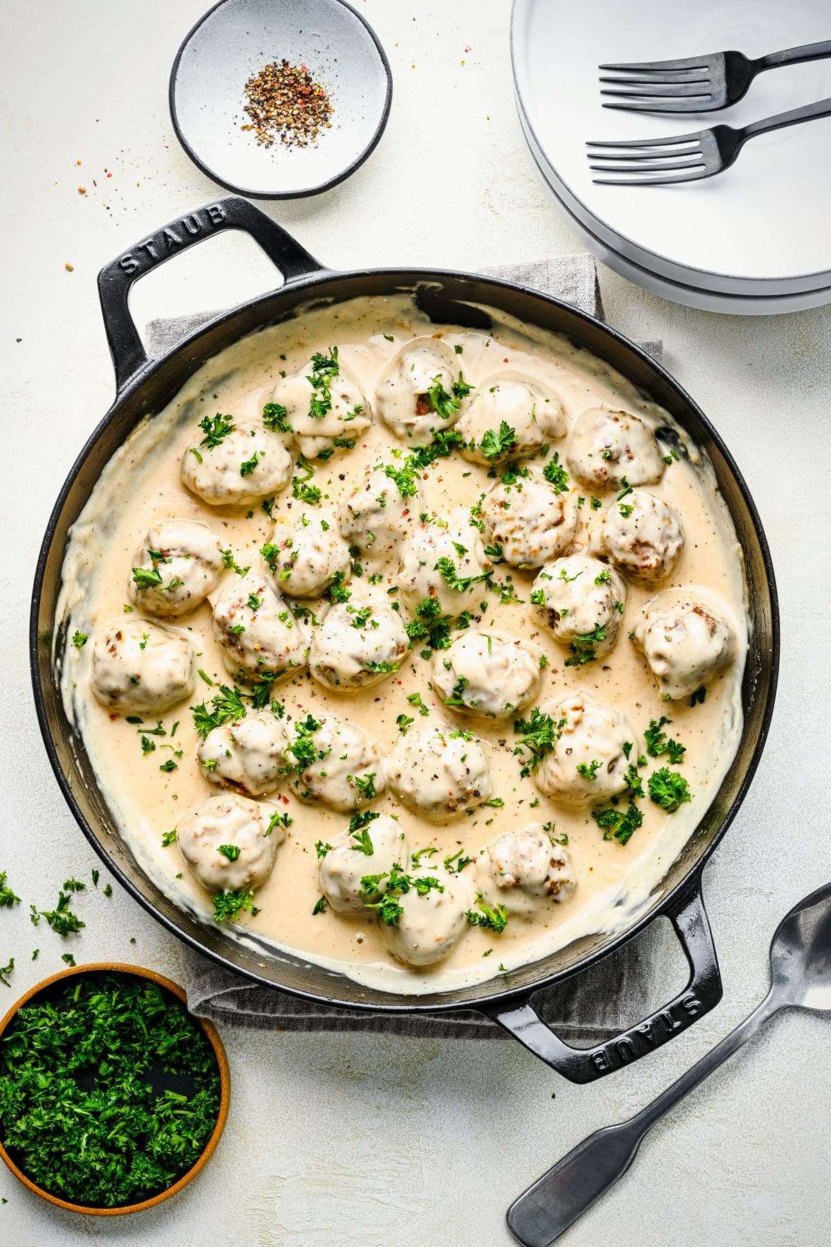 Swedish meatball and gravy recipe makes tender ground pork meatballs in cream gravy.