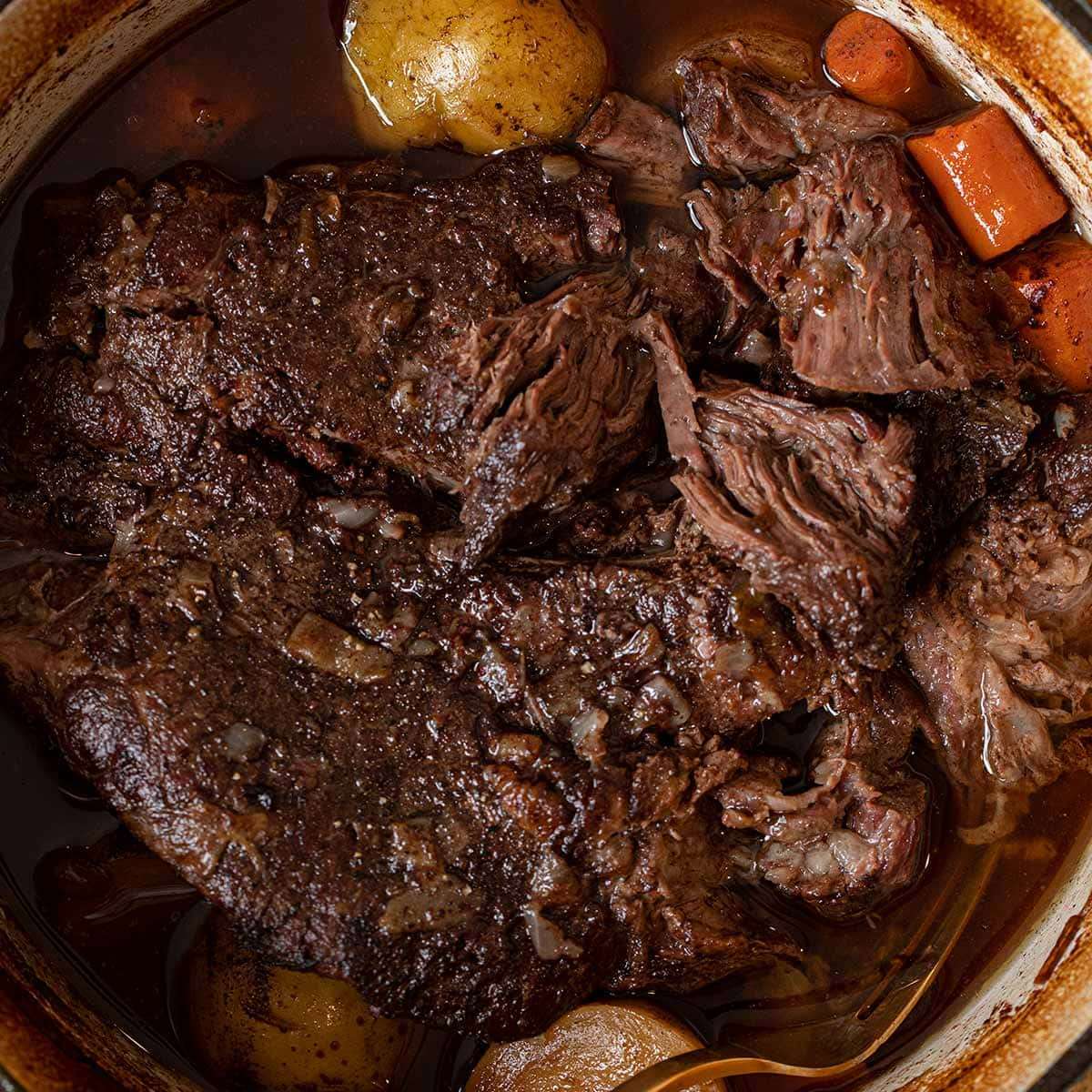 Swedish Pot Roast is the ultimate comfort food made in one pot with potatoes, carrots, creamy gravy and warm spices like nutmeg, cinnamon, and ginger.