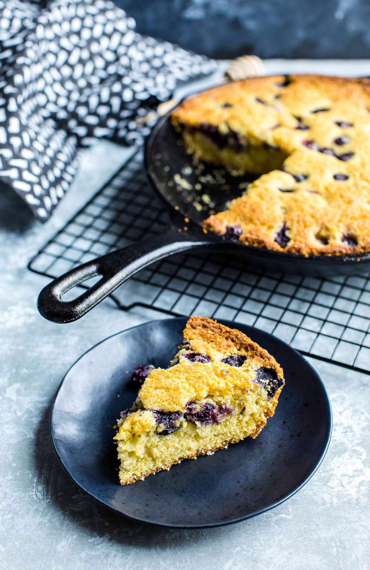 Sweet Blueberry Cornbread Skillet with Cinnamon Honey Butter kissed with savory sweetness and baked to fluffy perfection. This cast iron skillet cornbread is totally delicious!