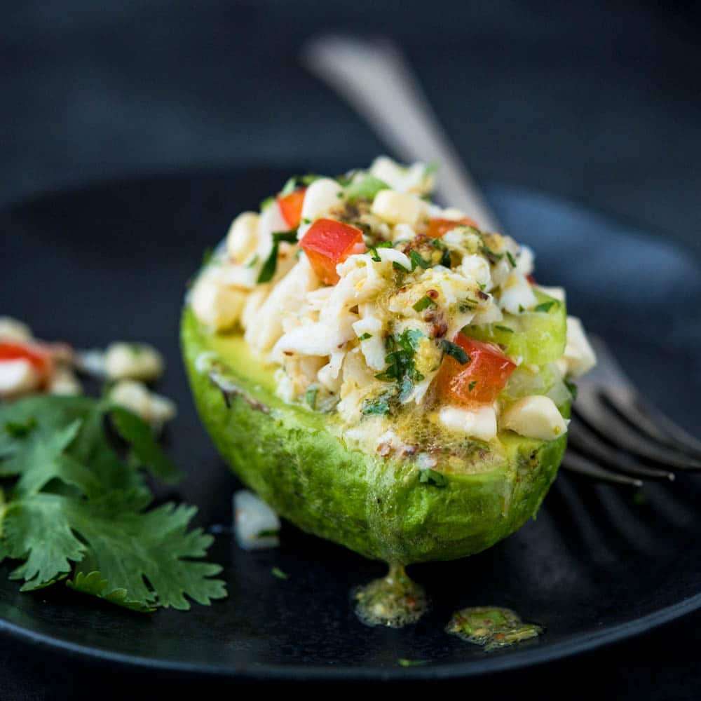 This fresh seafood salad is perfect for summer. It uses the sweetest corn off the cob with real lump blue crab meat and finely chopped veggies in a tangy citrus dressing. Make this crabmeat salad recipe to stuff into avocado halves, lettuce leaves or as a filling for campari tomatoes for a fun appetizer. This lump crab salad is a light and refreshing lunch or dinner.