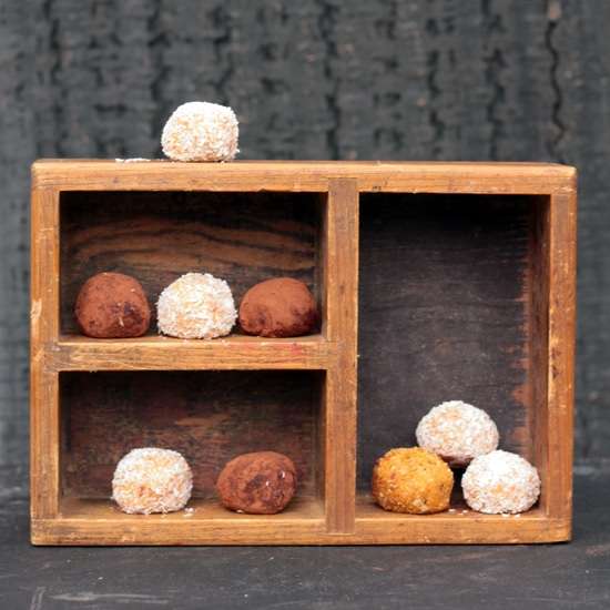 - Roll into teaspoon-sized balls, then roll in the coconut, cocoa etc… and store in the refrigerator or freezer.