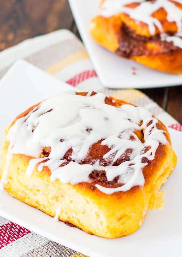 These Sweet Potato Cinnamon Rolls are the most tender, soft and decadent cinnamon rolls with a brown sugar cinnamon filling and slathered with a delicious icing. What's the secret to these rolls? Sweet potatoes!
