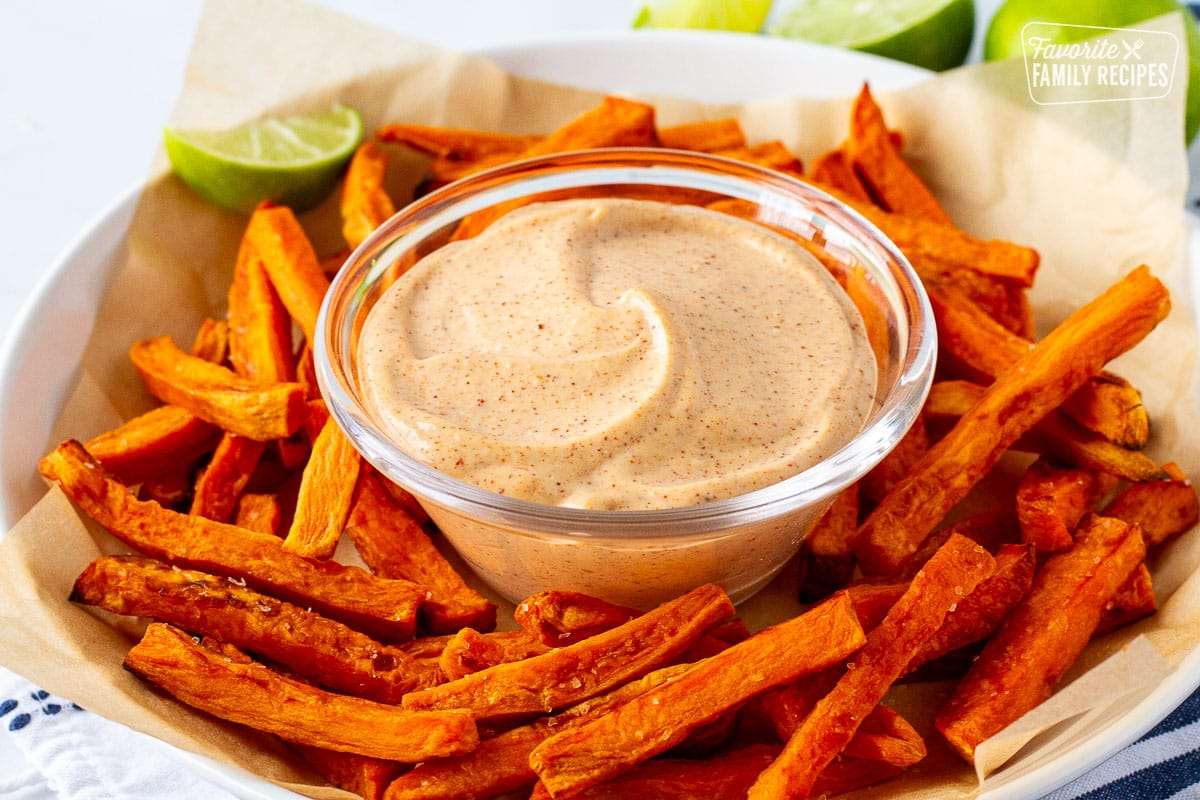 This Sweet Potato Fries Dipping Sauce has a mild kick that pairs perfectly with the sweetness of the potatoes.