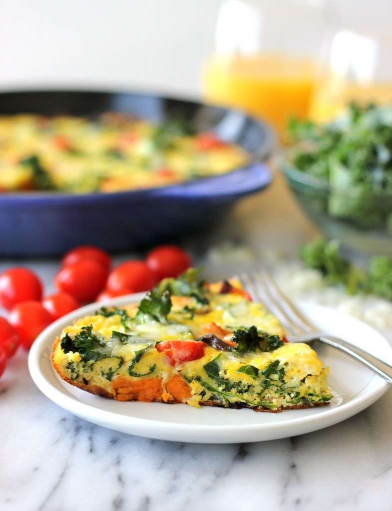 With caramelized onions, tomatoes, kale and sweet potato goodness topped with melted mozzarella, you’ll want to make this for breakfast every single morning!