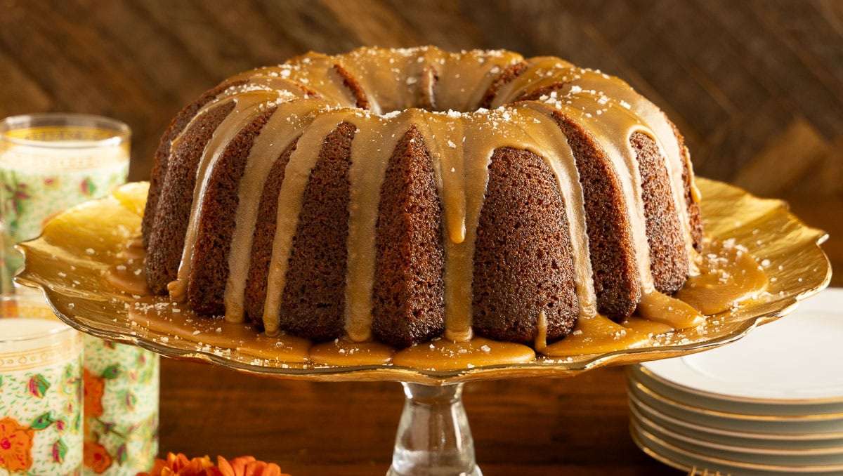 Sweet Potato Pound Cake with Salted Caramel Glaze
