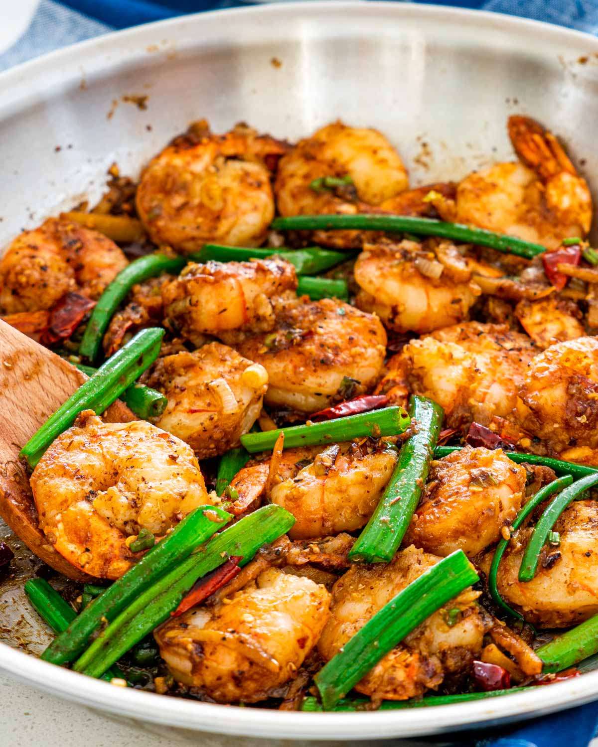 - If you want to keep your Szechuan chili shrimp for longer to use for future meals, make sure they have cooled down, then place the cooked shrimp on a parchment paper lined baking sheet, cover with plastic wrap, and freeze for 1-2 hours or until solid (this will prevent them from sticking together when stored). Transfer them to an airtight container or freezer bag and store them in the freezer for up to 3 months. Thaw completely and reheat in the oven to retain crispiness.