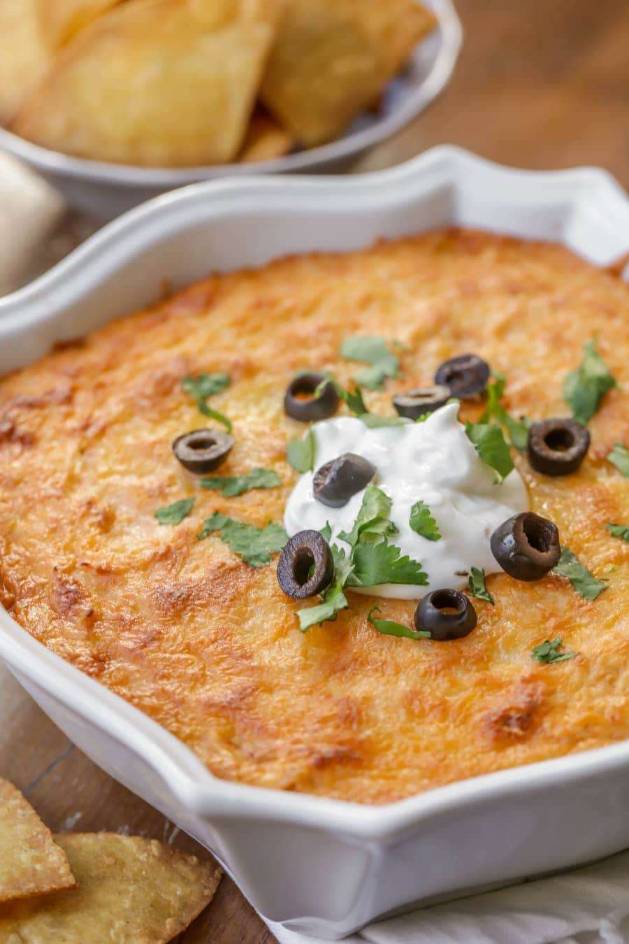 Tamale Pie Dip - this cheesy dip is going to be a new favorite at any gathering! Filled with shredded chicken, creamed corn, cream cheese, Mexican cheese, and sour cream!