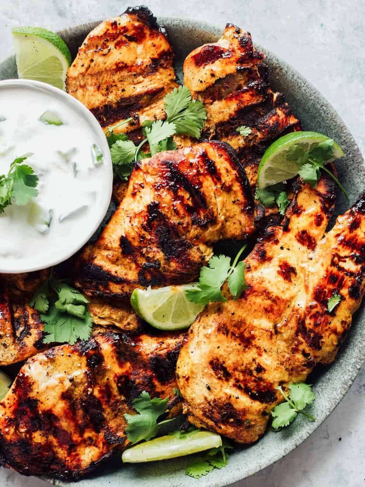 - Once hot, place the chicken breasts on the grill. Cook for 6-8 minutes, flip, and cook for another 6-8 minutes until the chicken is slightly charred on the edges and cooked through (165°F internal temperature). Serve and enjoy.