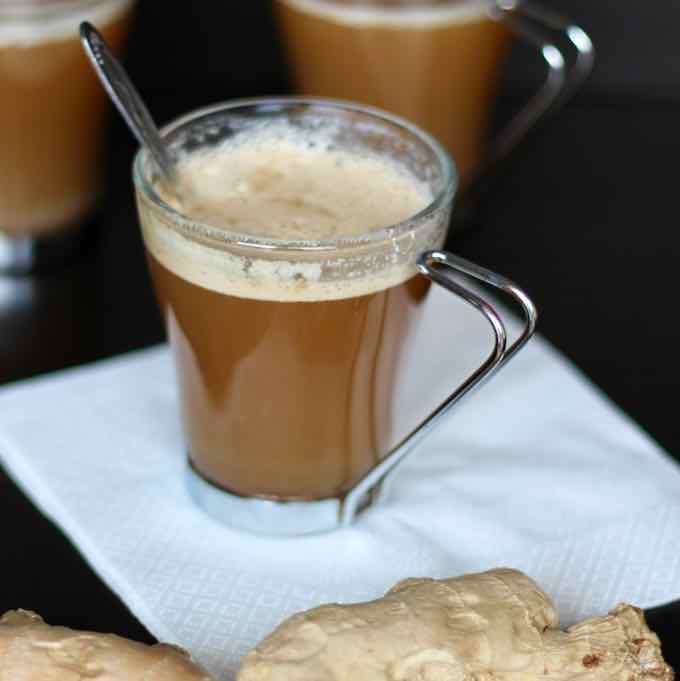 - Agregue el té y el jengibre y deje reposar a fuego lento durante 10 minutos.