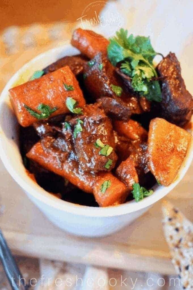 - OPTIONAL | Prior to serving remove 1 cup of liquid, whisk in flour, pour back into stew and stir to thicken.