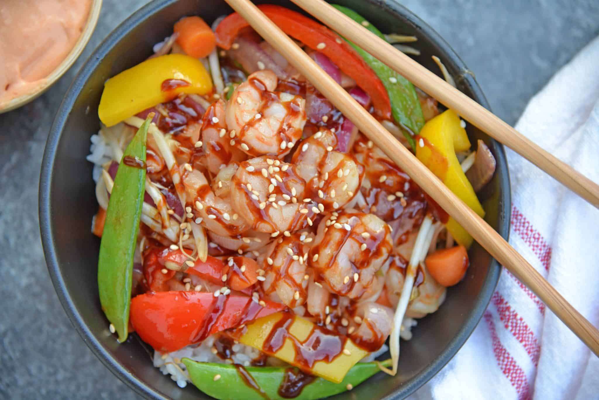 Skip the takeout and make this easy Teriyaki Shrimp Stir Fry in only 30 minutes! This Shrimp Stir Fry is an easy weeknight meal that the whole family will love!