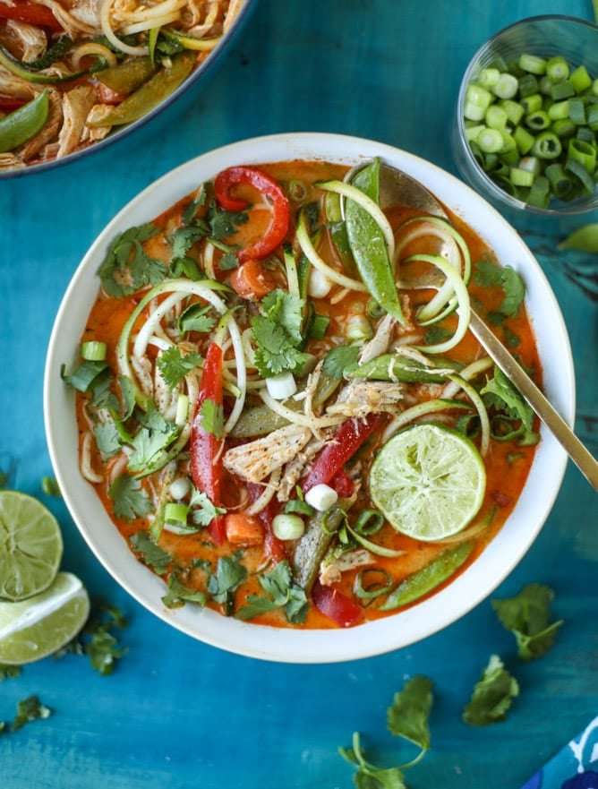 - Note: this reheats well really, but the zoodles can get mushy! I do suggest making zoodles and keeping them in your fridge, and adding just enough to the hot soup each time you heat it so they stay crisp.
