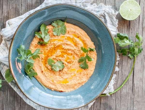 A creamy homemade hummus bursting with sweet and spicy Thai flavors.