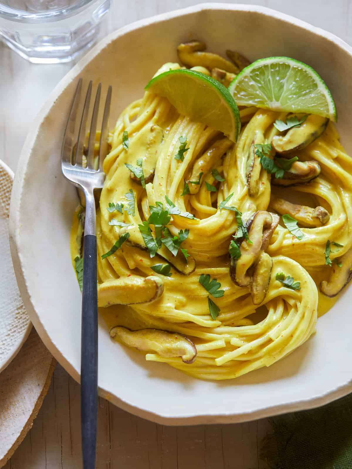Thai Yellow Curry Noodles with Shiitake Mushrooms
