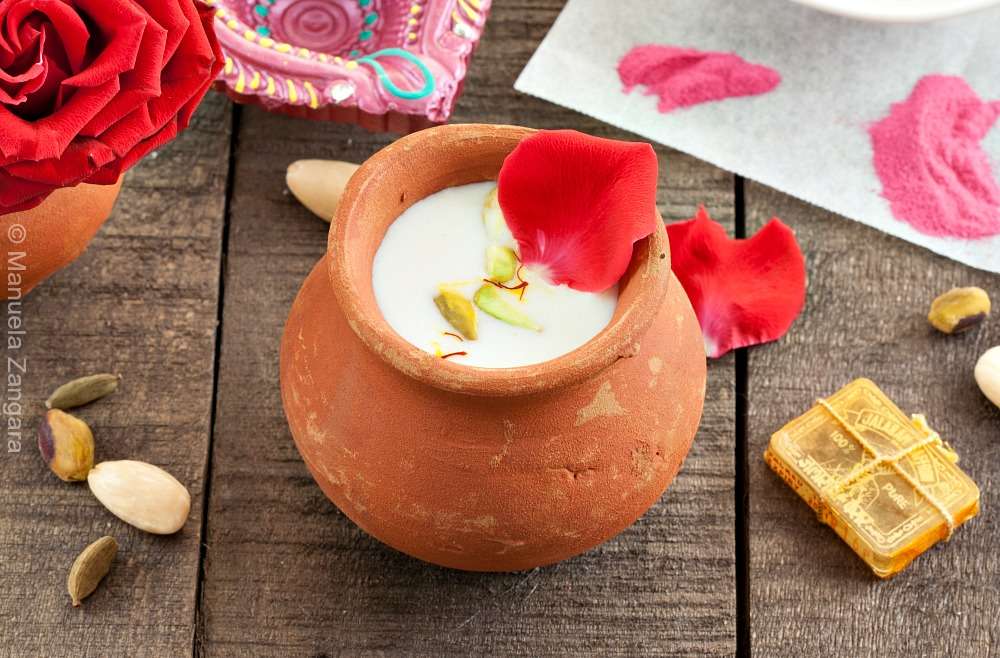 Thandai - a refreshing Indian drink made with milk, almonds and spices, perfect to cool you down on a hot summer day and traditionally prepared during Holi.