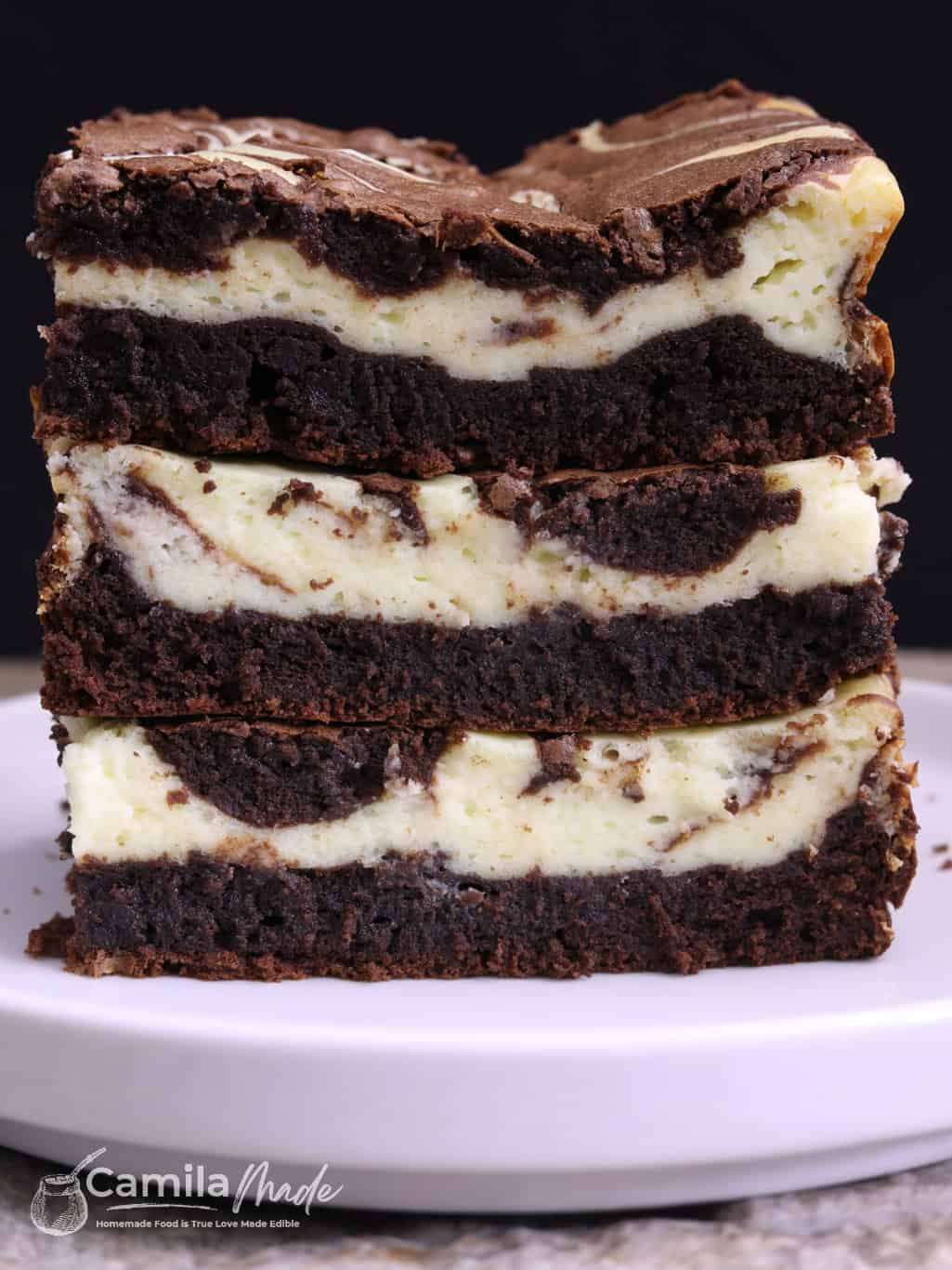 Rich, fudgy homemade brownies swirled with creamy, tangy cheesecake make the perfect treat! These cheesecake brownies are ideal for any occasion, from potlucks to birthdays.Enjoy them with a hot cup of coffee or savor them on their own. The recipe is straightforward and can be made with a mixer or by hand. While the marble swirls add a stunning presentation, you can skip this step for a simpler, yet still incredibly delicious, dessert. 😉
