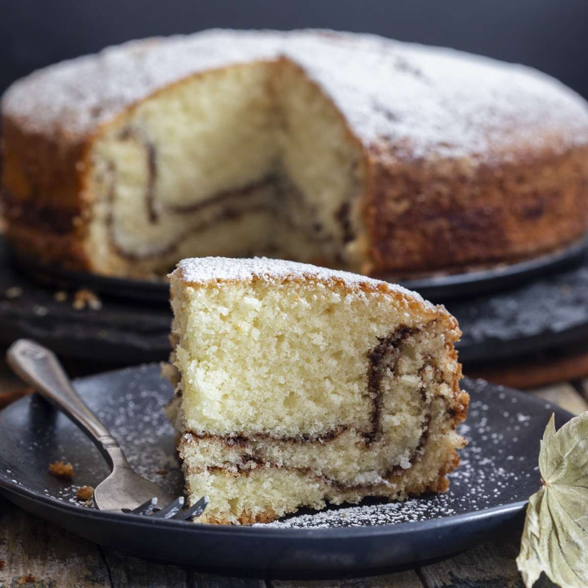 - Spoon 1/3 of the batter into prepared cake pan. Sprinkle with 1/2 of the cinnamon mixture. Spoon another 1/3 of the batter on top, then remaining cinnamon mixture, then top with the remaining batter. Bake for approximately 50-60 minutes or until toothpick comes out clean or with a few crumbs attached. Remove from oven and let cool 15-20 minutes in the pan then move to a wire rack to cool completely. Dust with powdered sugar before serving if desired. Enjoy!