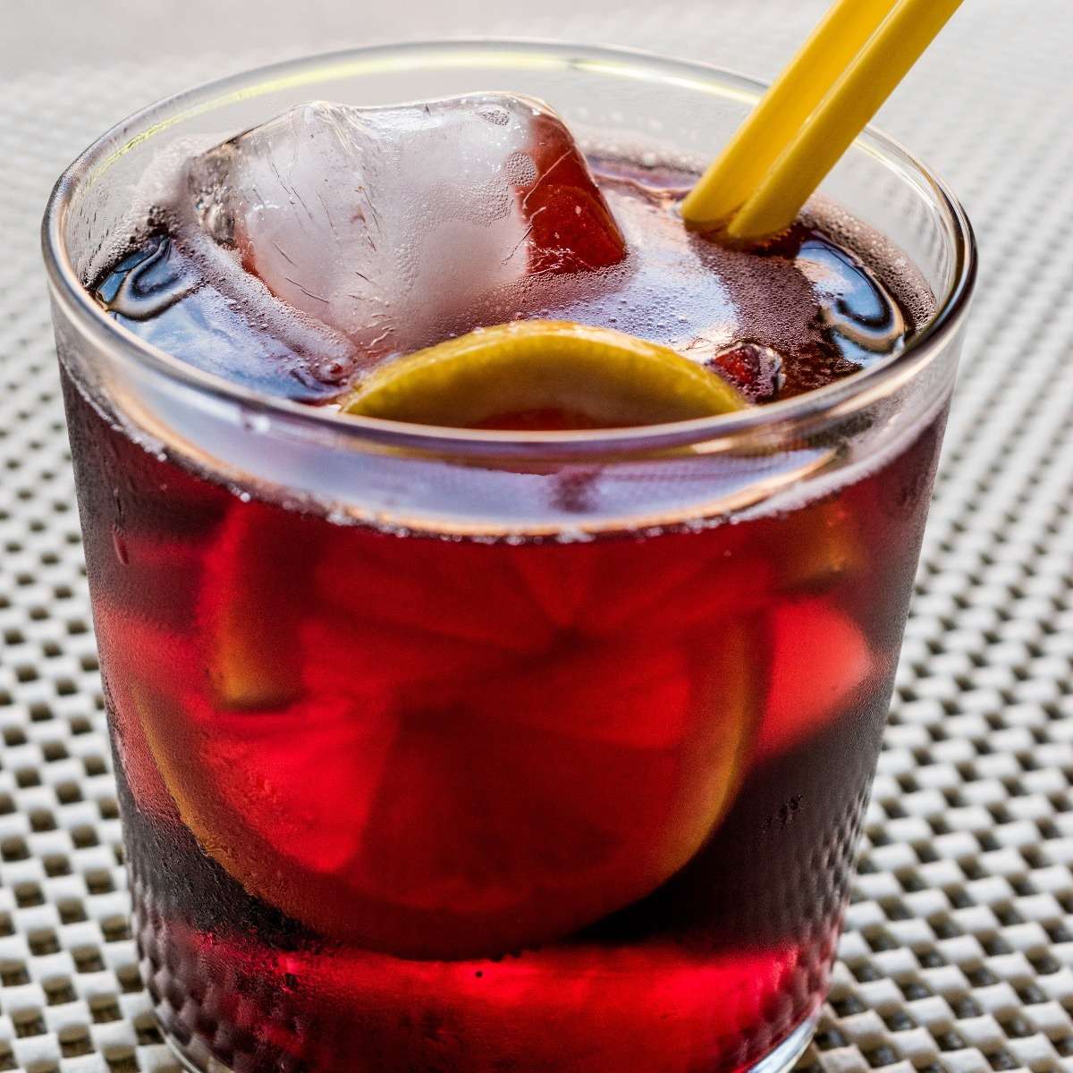 - Strain the mixture into a rocks glass filled with ice.