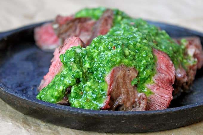 The perfect, easy, Brazilian Steakhouse steak is waiting for you and it is just a cast iron skillet away. Topped with this beautiful Chimichurri sauce, you'll feel like you've paid 10 times as much