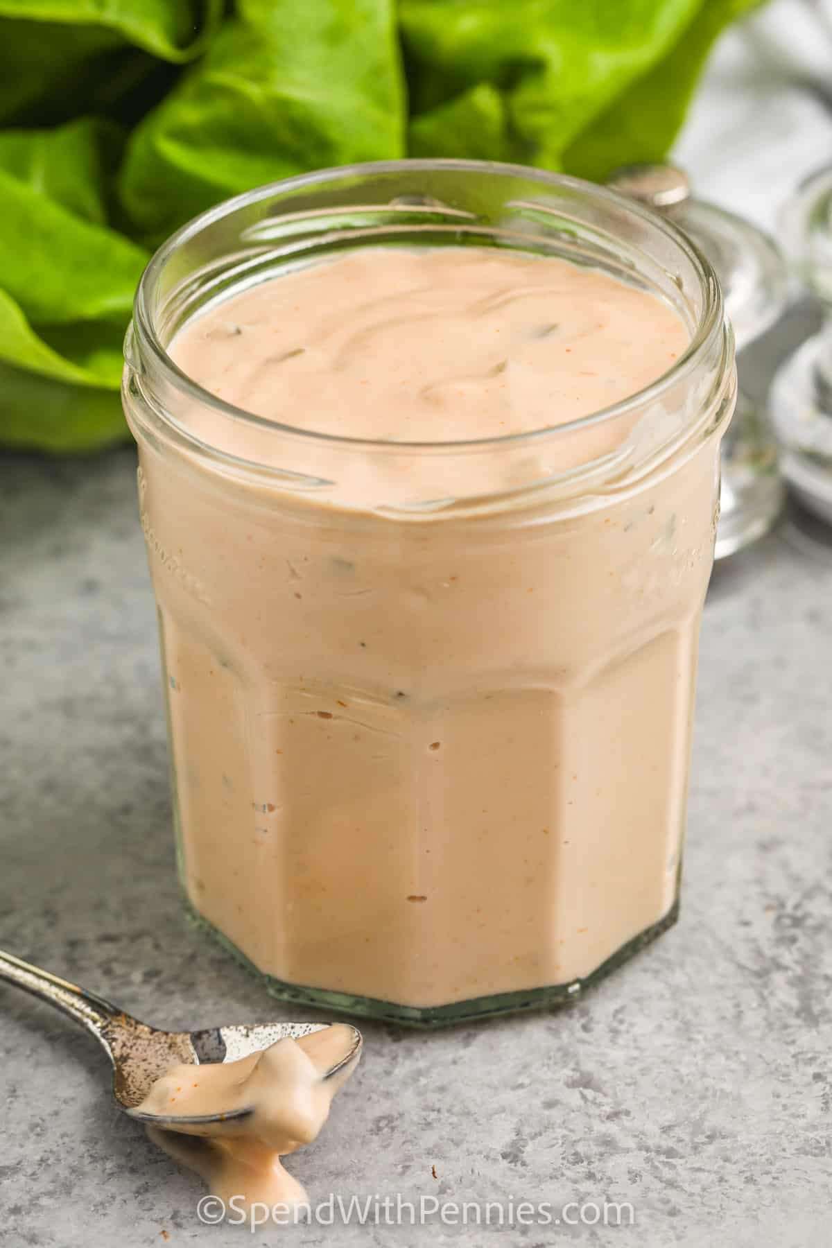 - Homemade thousand island dressing will keep up to a week in a container with a tightly fitted lid or a jar (as long as your sour cream is fresh). A mason jar is the easiest option.