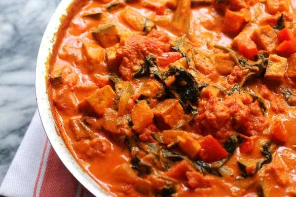 - Add in the cream, yogurt, and tofu. Season to taste with salt. Simmer, stirring occasionally, until slightly thickened, about 15-20 minutes. Serve with rice, barley or quinoa.