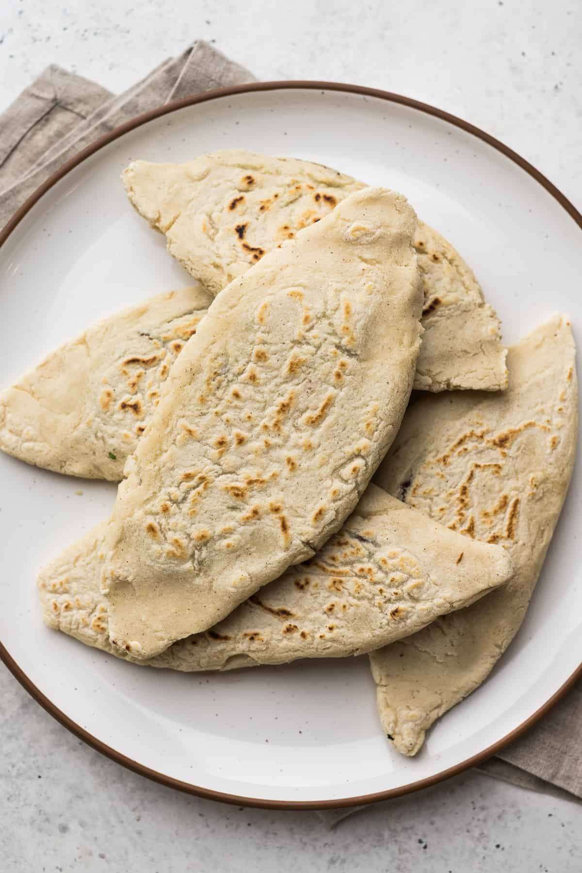 - Place the tlacoyo on the hot skillet and cook for about 3 minutes on each side. Transfer it to a plate and cover it with a kitchen towel to keep it soft. Repeat this process until all the tlacoyos are cooked.