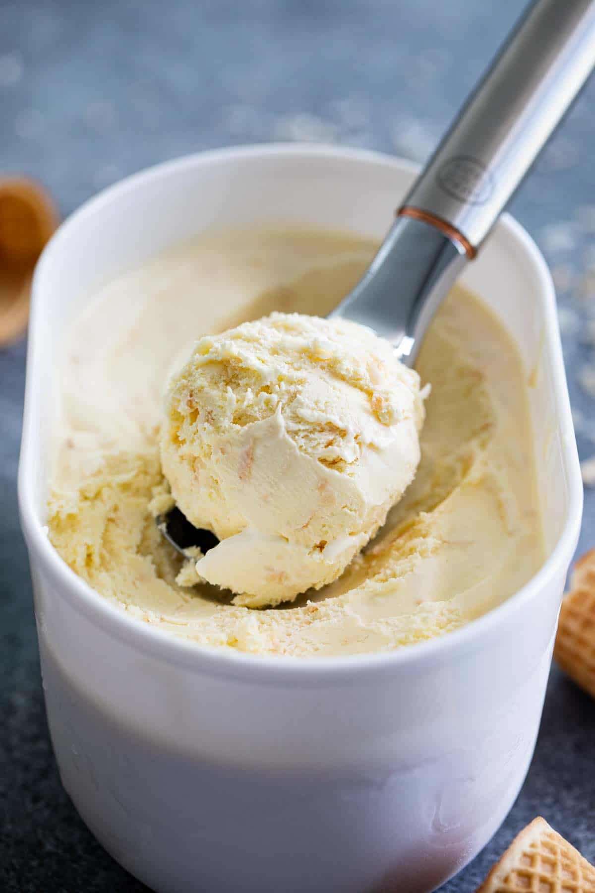 Indulge in this Toasted Coconut Ice Cream - a creamy custard based ice cream filled with coconut flavor and bits of toasted coconut.