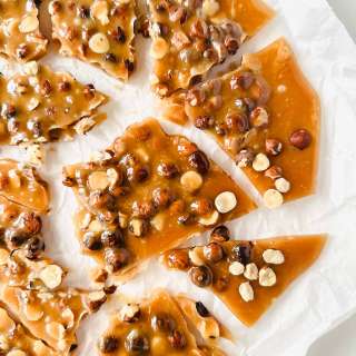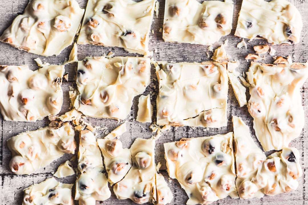 Toasted hazelnut bark is an easy candy made with white chocolate and toasted hazelnuts.