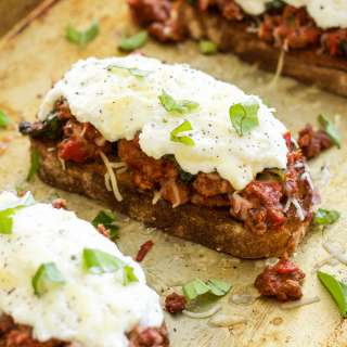 - In another bowl or pot, crumble pressed tofu and add marinara sauce. Mix together and give the marinara a taste to see how flavorful it is. If needed, you can add salt, pepper, garlic powder, onion powder or additional spices to give the marinara more flavor!