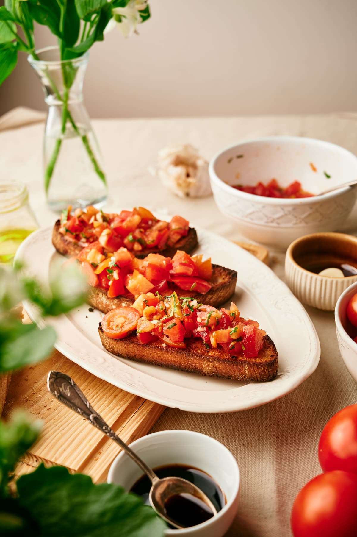 - If you are worried about your bruschetta being too garlicky, consider using roasted garlic instead of raw garlic as the taste is milder and sweeter or you can leave it out completely.
