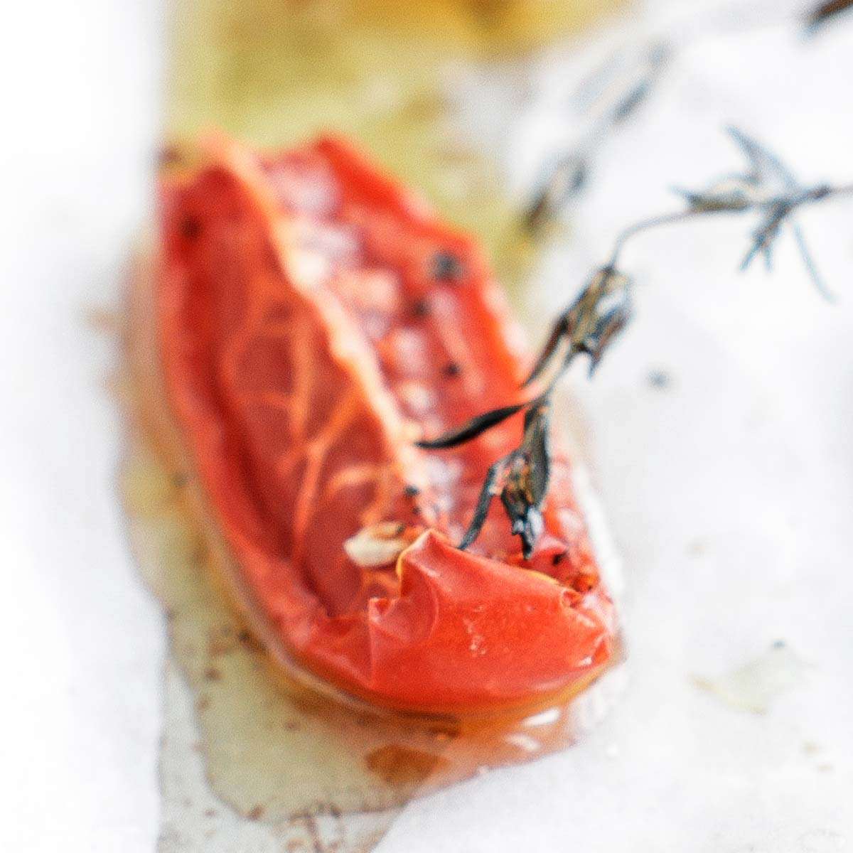This simple tomato confit recipe is fresh, slow-cooked tomatoes in olive oil with herbs and garlic for bold tomato flavors.