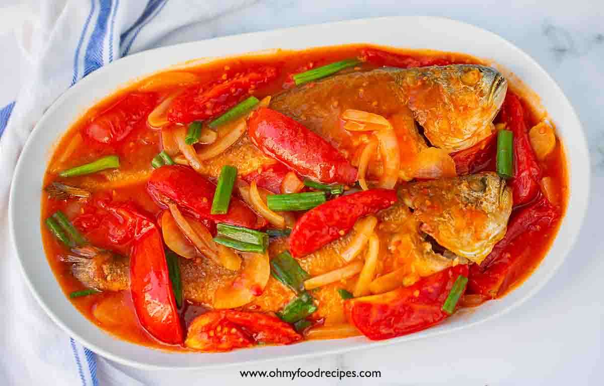 - After pan frying the fishes, add onion, tomatoes, salt, ketchup, sugar and water sautéing until the tomato is soft and fragrant. This step builds a flavorful base for the sauce.