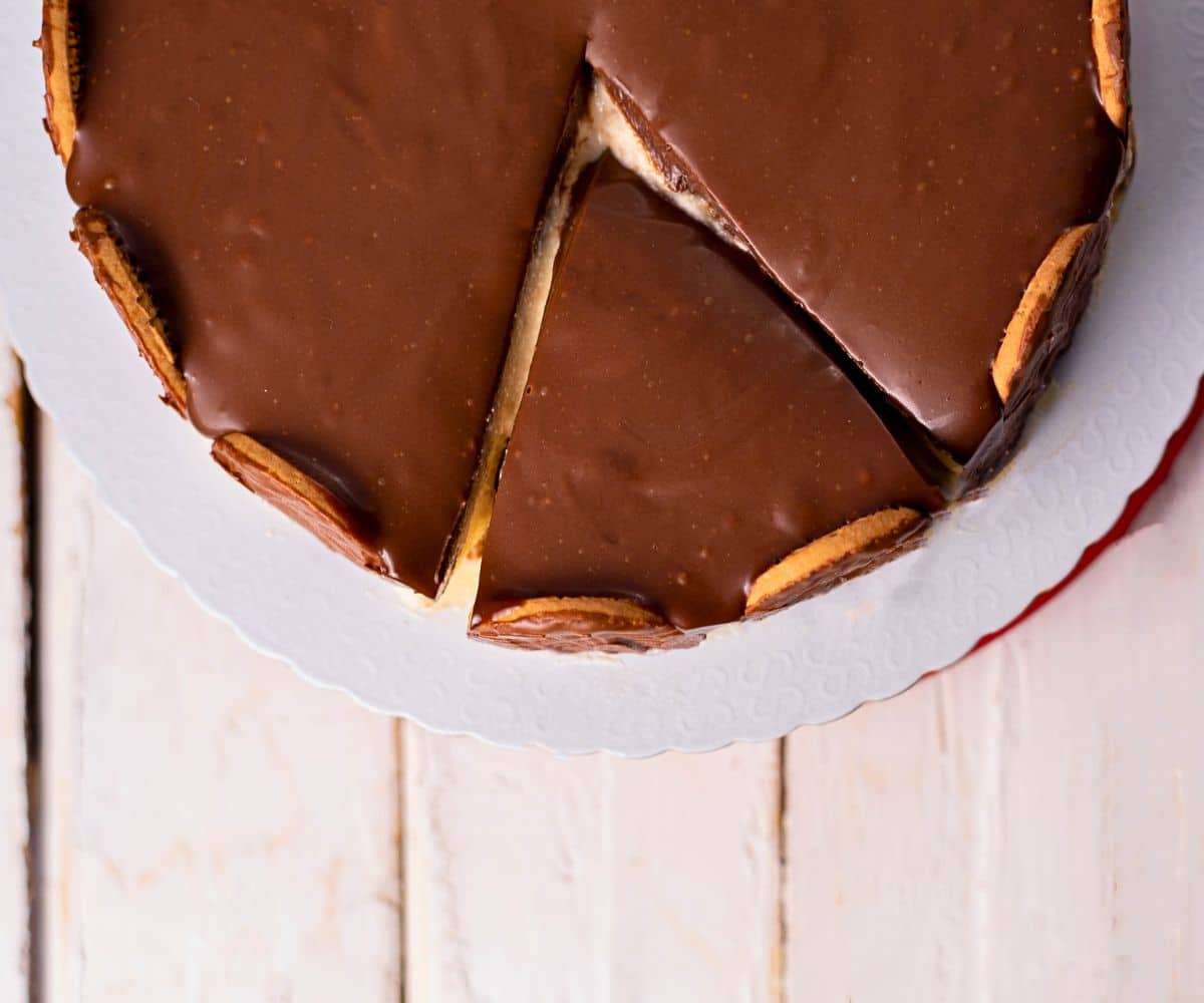 - Once set, it's time to prepare the chocolate topping. To do this, heat up the heavy cream in a saucepan on medium-low heat until it begins to bubble. Remove from the heat and stir in the chocolate powder, and butter and continue stirring until it thickens. Set aside to cool.