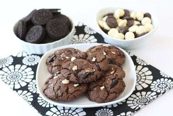 - 4. Slowly add flour mixture to sugar mixture and mix until flour disappears. Stir in chocolate chunks and Oreos. Drop cookie dough by rounded tablespoons onto prepared baking sheet, about 2 inches apart.