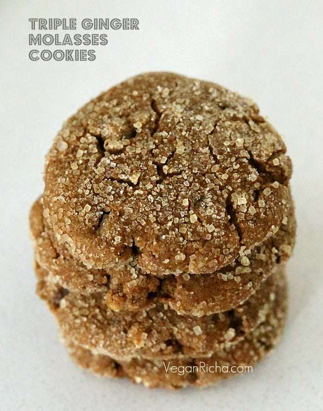 These Vegan Triple Ginger Cookies are soft and chewy, filled with molasses, fresh, candied and powdered ginger.