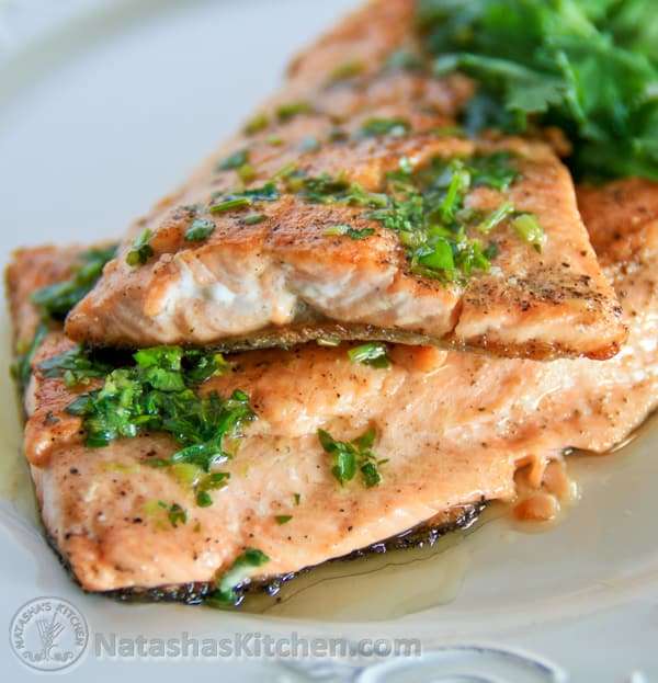 - Remove finished trout from the skillet & top each hot fillet with 1 Tbsp of the Lemon-Parsley Butter.