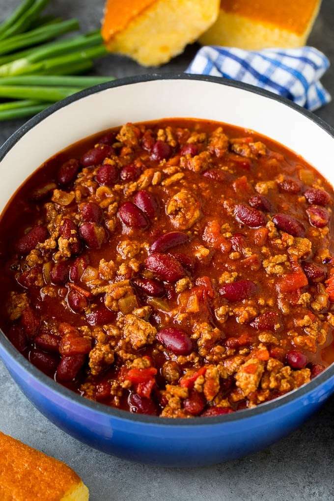 This turkey chili is a blend of ground turkey, tomatoes, spices and beans, all simmered together to make a delicious and hearty meal. A lighter version of the classic chili that's easy to make and always gets rave reviews!