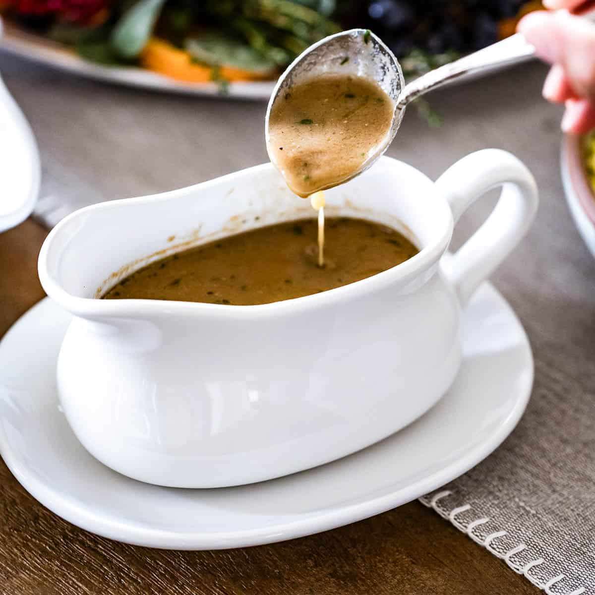 Learn how to make rich, creamy Turkey Gravy with drippings! This easy homemade recipe is the perfect finishing touch to complement your Thanksgiving turkey.