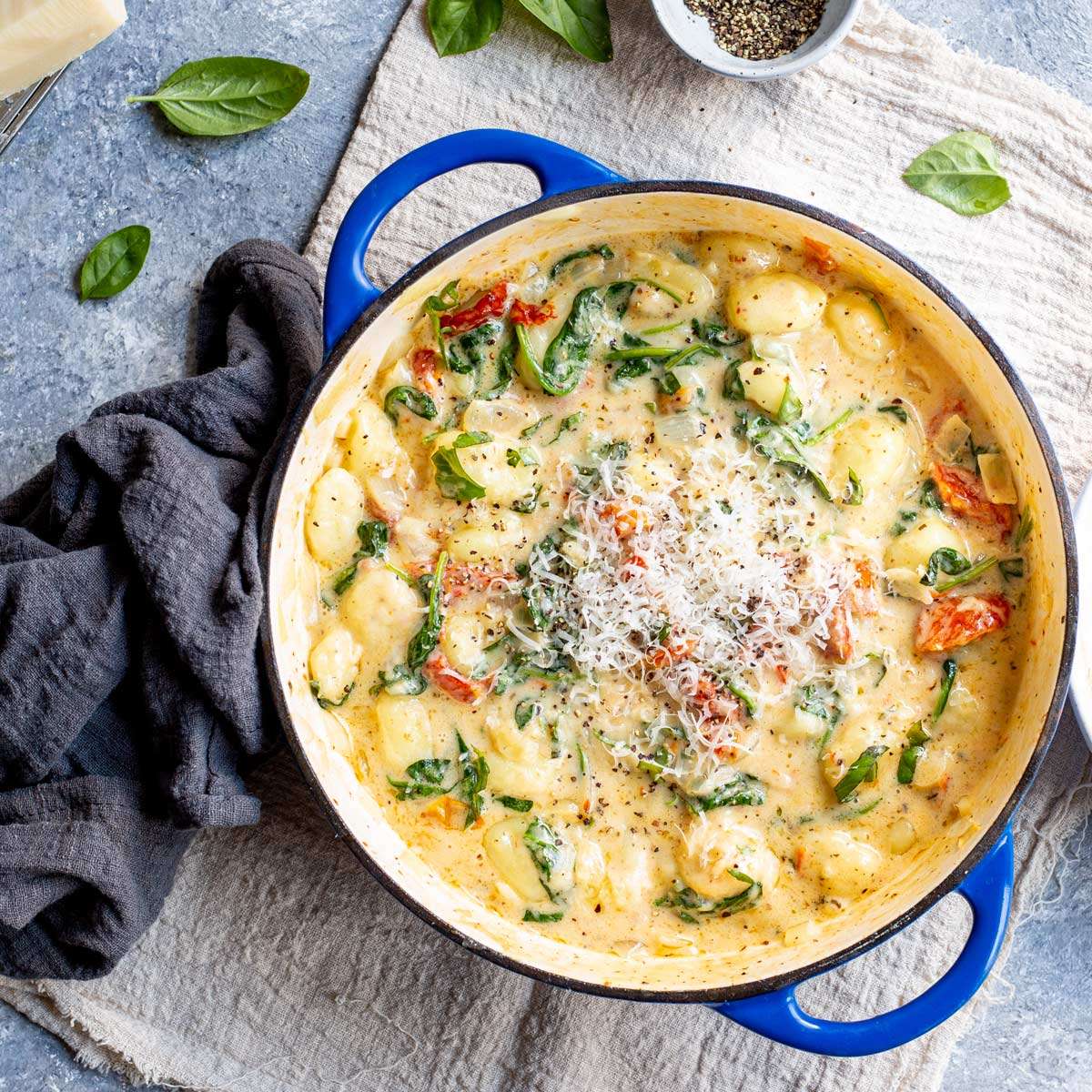 - Add the butter, sun-dried tomatoes, and Italian seasoning to the pan; once melted, add the gnocchi and turn to coat in the butter.¼ cup / 60 g butter½ cup sundried tomatoes½ tsp Italian seasoning17.6 oz / 500 g shelf-stable dried gnocchi