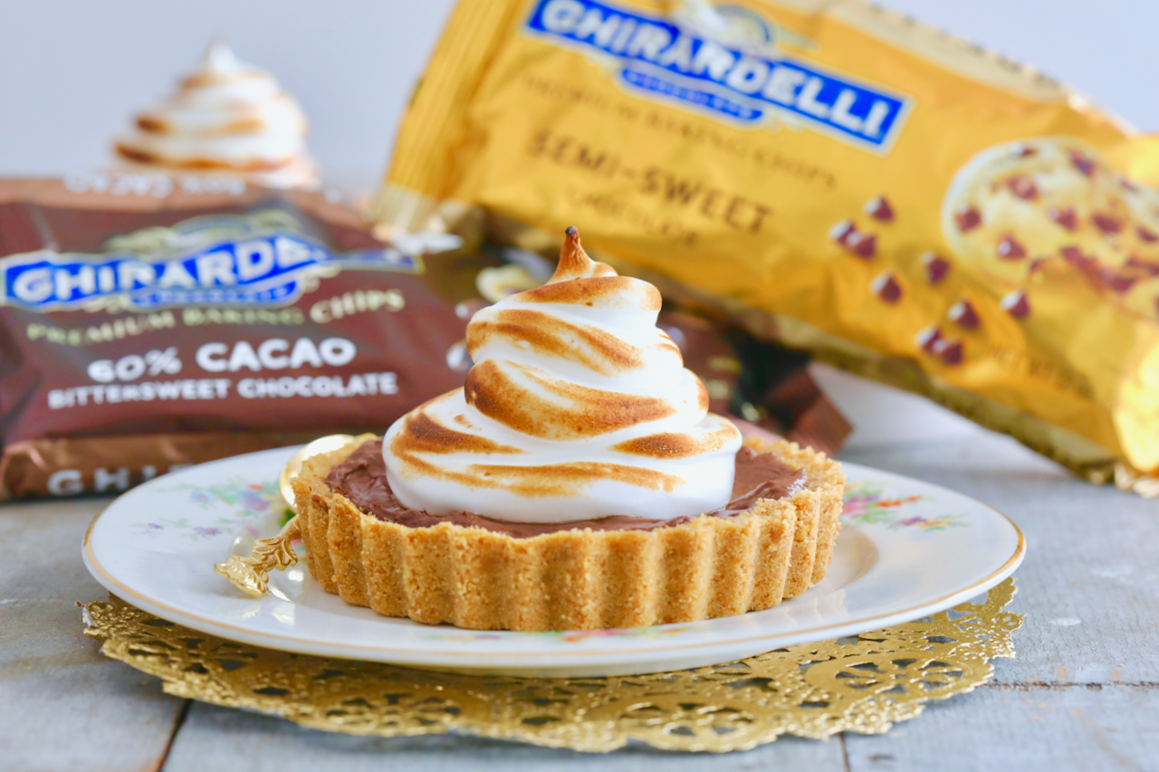 No baking necessary when it comes to my No-Bake Hot Chocolate Pie using not one but TWO different kinds of irresistible Ghirardelli chocolate chips!