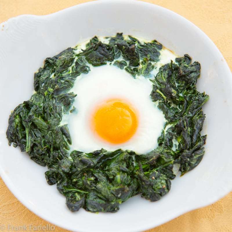 - For a more elegant alternative, as pictured in this post, you can serve your Eggs Florentine in individually baked ramekins. Oil the bottom of each ramekin, prepare a bed of sautéed spinach in each, leaving a little well in the middle of each one. Then drop one egg into the middle of each ramekin. Bake in a hot 200C/400F oven until the eggs are done to your liking.
