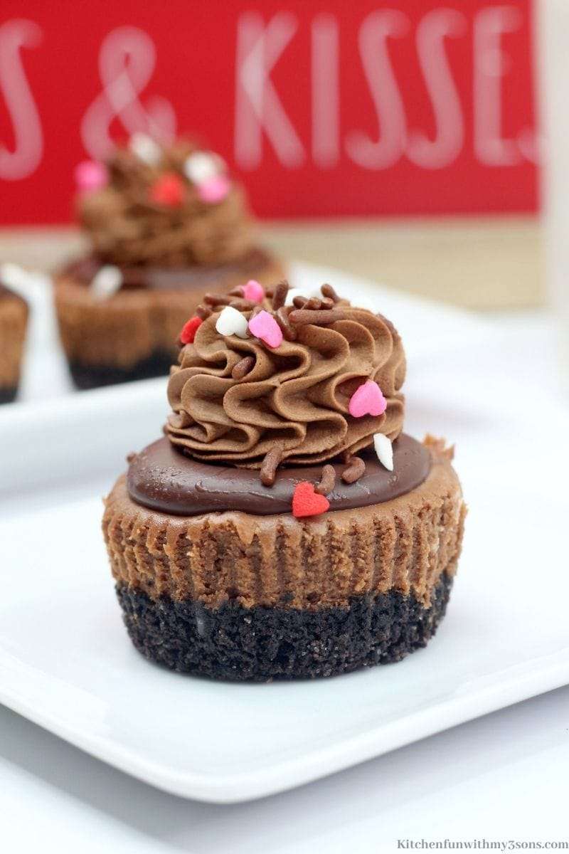 Calling all chocolate lovers! Whether you are a chocolate lover or one of your friends or family, this delicious dessert is perfect for you. These Valentine's Day Mini Chocolate Cheesecakes are not only a delicious treat to give to someone on Valentine's day but to have any time you want.