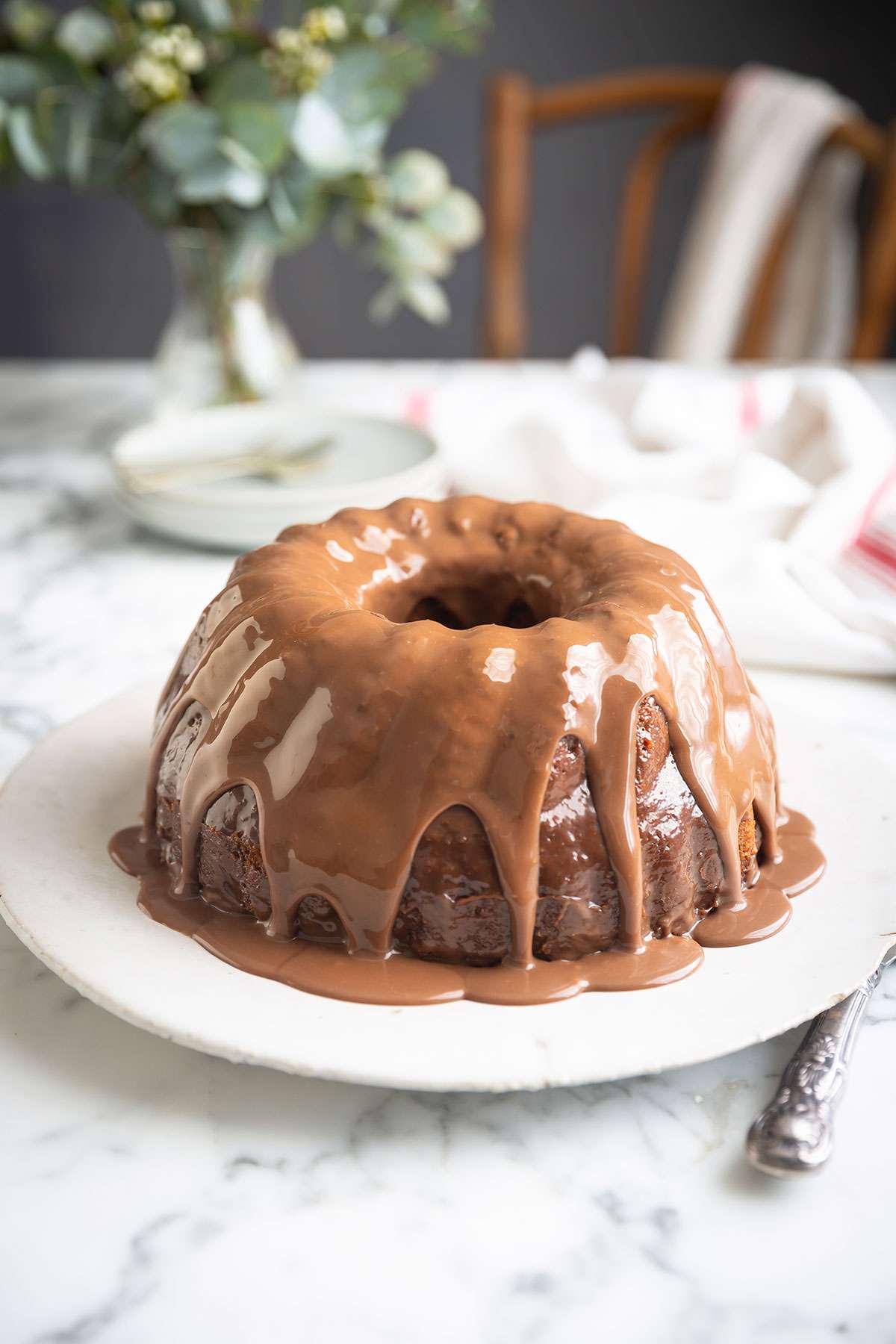- Allow the Bundt cake to cool in the tin for about 20 minutes then invert it onto a plate.