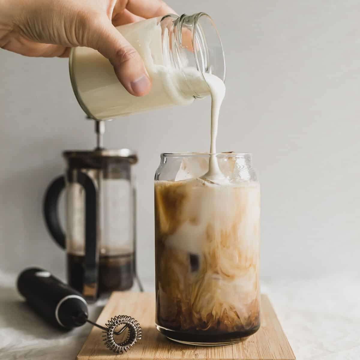 - Use a hand-held milk frother to whip the mixture until lightly aerated and foamy. Be careful not to overwhip.