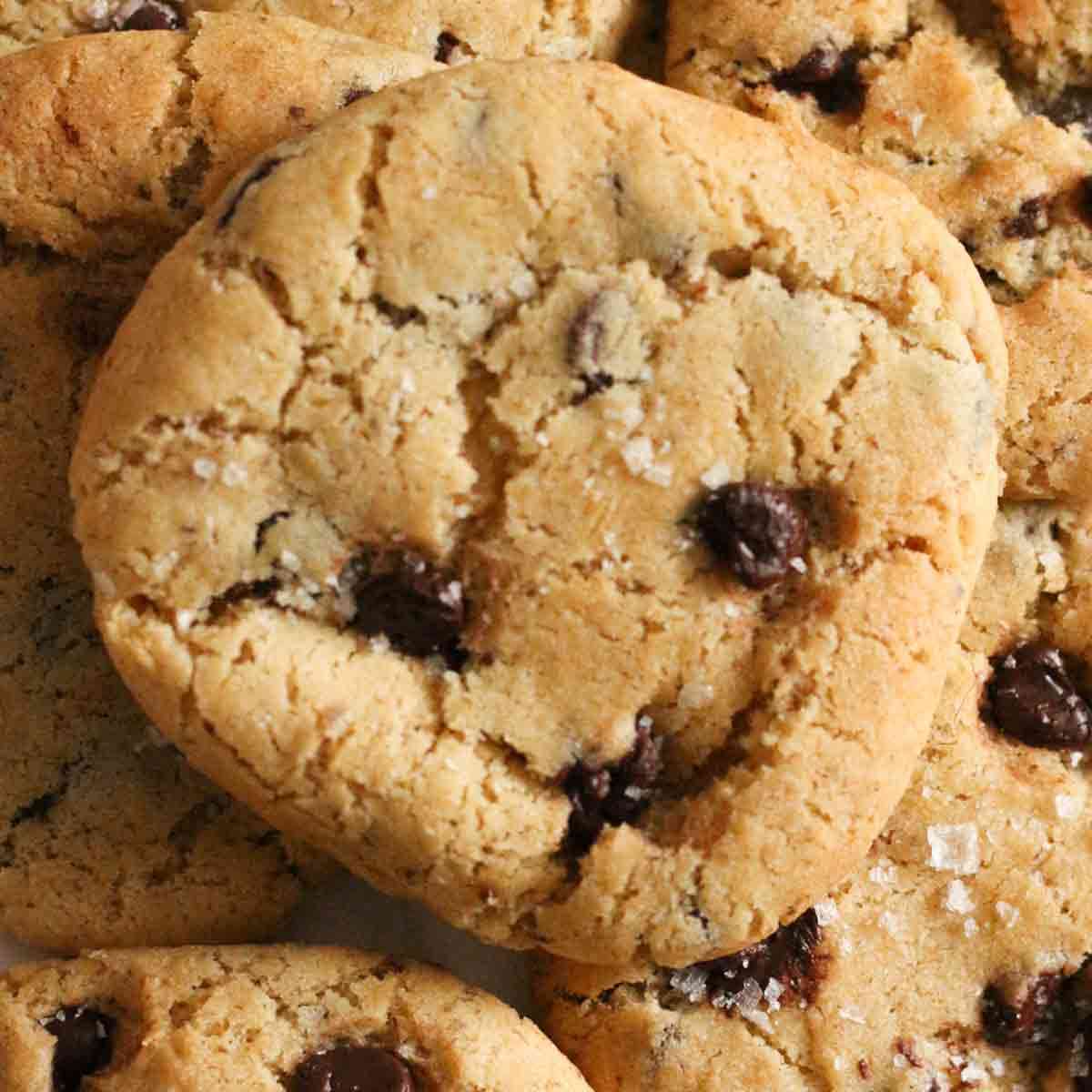 Soft and chewy chocolate chip air fryer cookies without eggs or dairy.