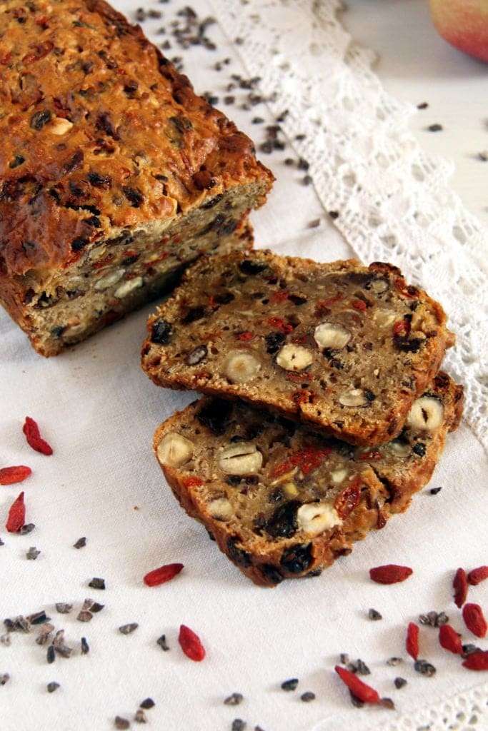Super moist and delicious vegan apple bread with hazelnuts and raisins. Easy to make and sure to please anyone.
